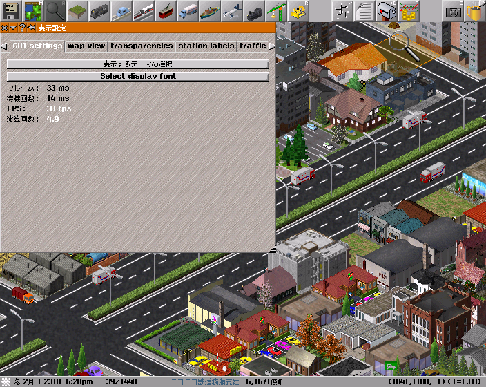 ちなみにSimutransにおいて一番重くなるのは描画範囲の変化なので、4kサイズで一番引いた状態で表示するとFPSはものすごく下がります。