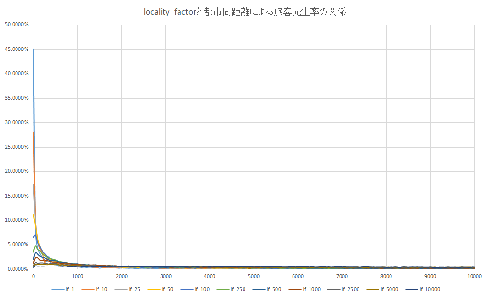 500マスを超える範囲においてはlocality_factorの値をマップ距離の50%程度まで設定すると距離に応じて旅客発生の数をある程度絞れると思います。