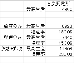 産業は旅客、郵便、電力でそれぞれ増産させることができますが、一旦それはあとにしておきます。